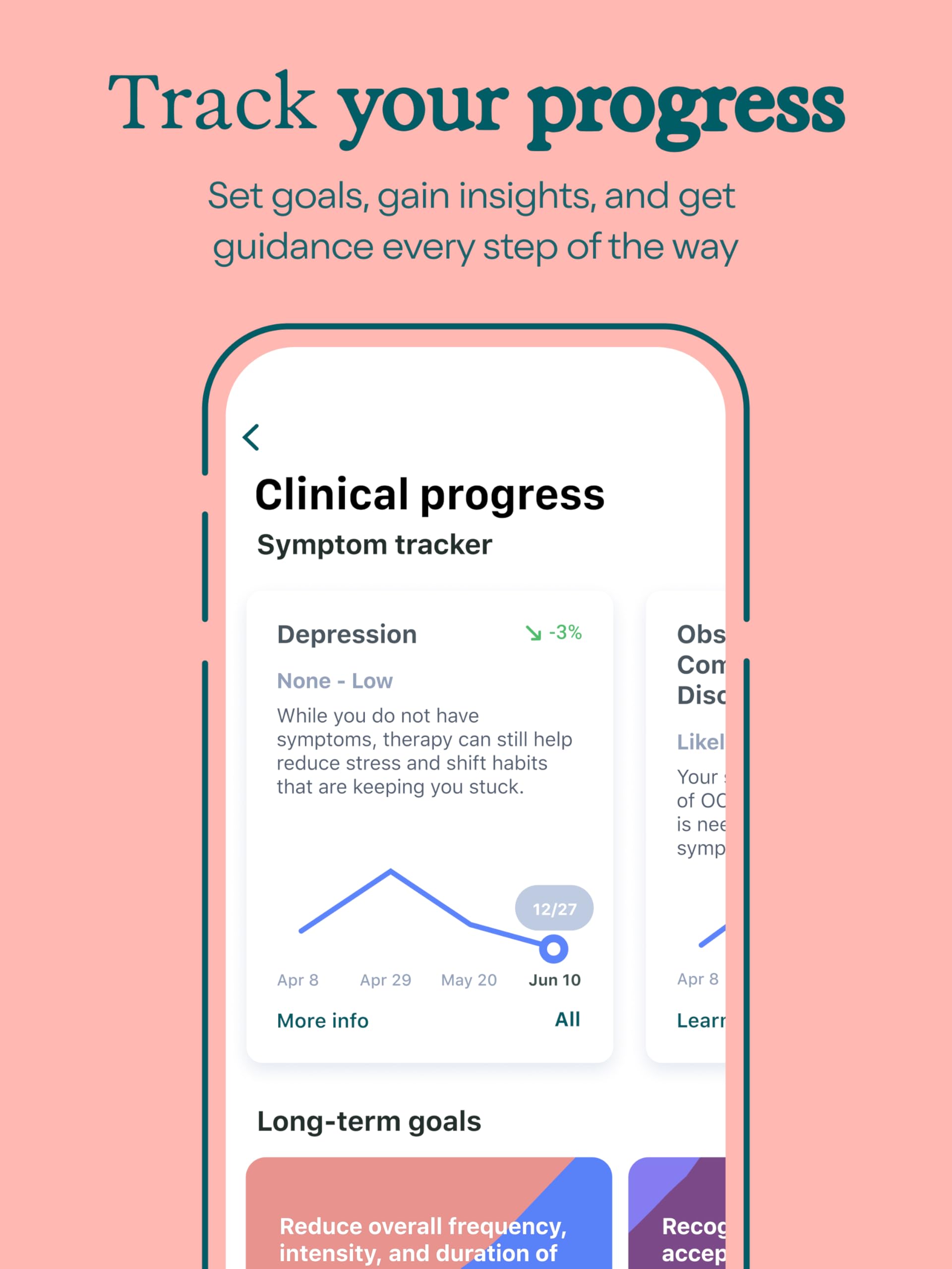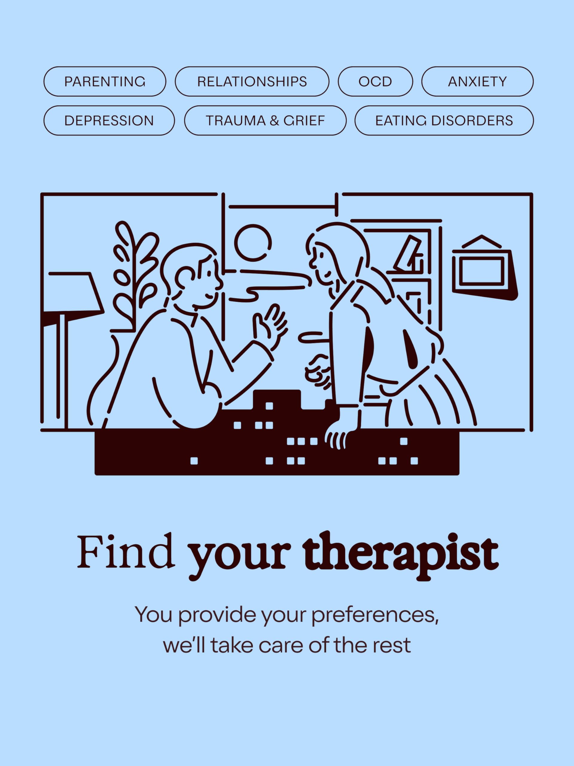 Connect with your own licensed therapist or psychiatric provider for personalized mental health support, such as messaging therapy, video appointments, or prescriptions. It’s fast and covered by insurance.