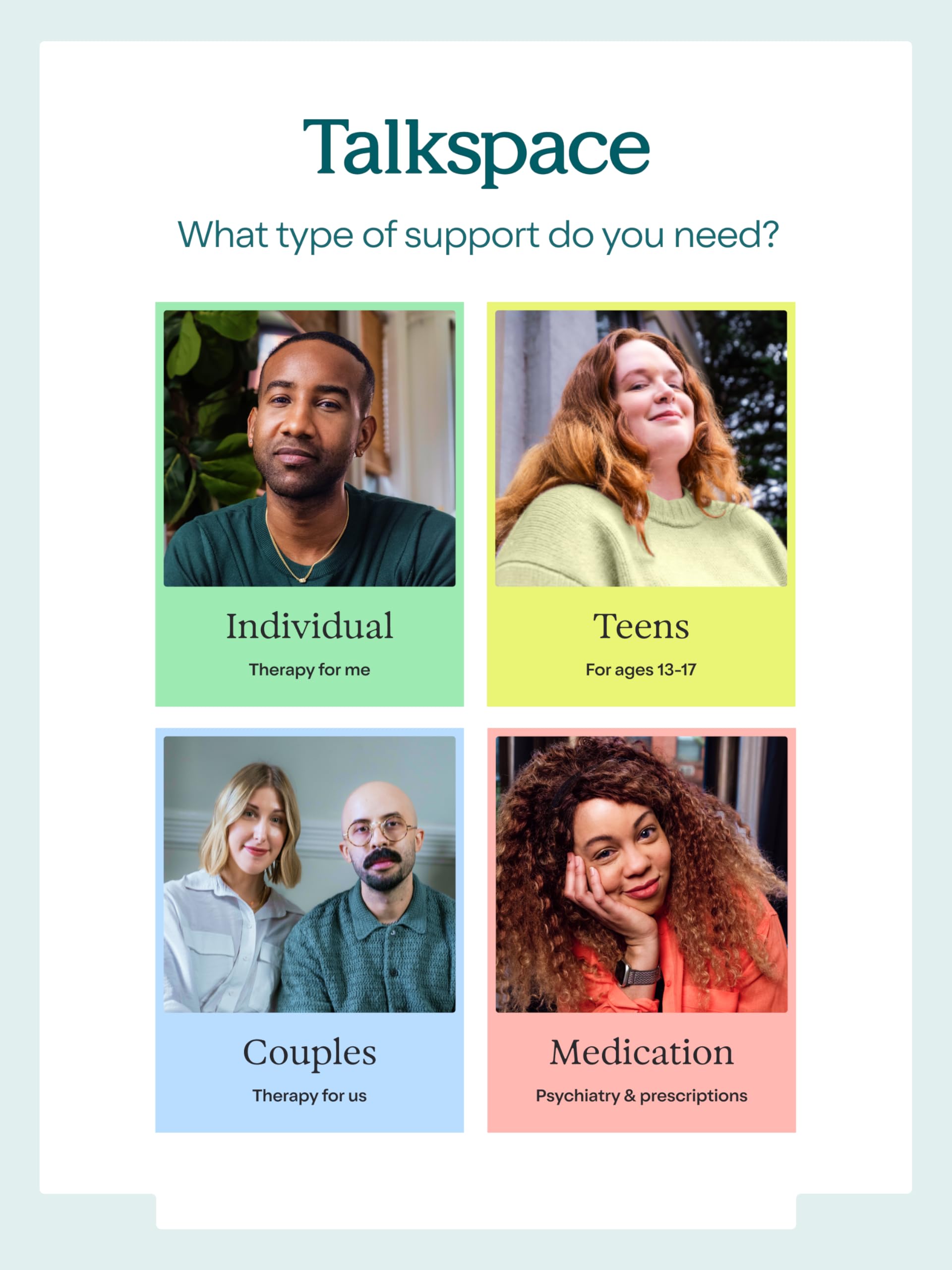 | Private and secure platform | All therapy takes place through the HIPAA-compliant Talkspace platform, with encrypted messaging. |