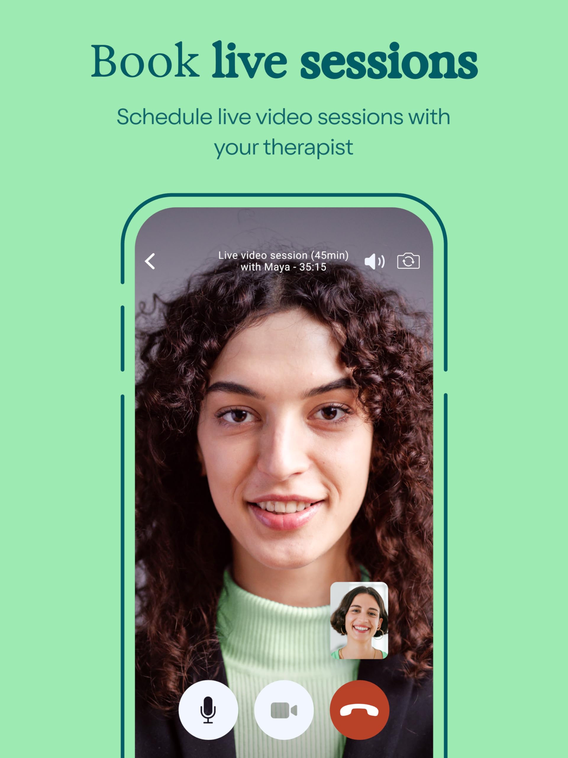 | Live virtual sessions | Schedule live online sessions with your therapist over video, audio, or live chat. |